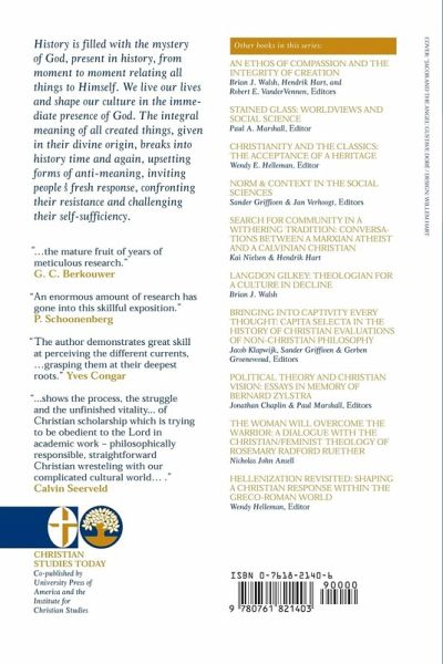 Chapter 1 Editor's Foreword Chapter 2 Catholic Conceptions of History: Chapter 3 Preface Chapter 4 Introduction Chapter 5 Nature and the Supernatural Chapter 6 Fall and Redemption Chapter 7 Christianity and History Chapter 8 Dualism and Connection Chapter 9 World History and Progress Chapter 10 The Problem of Christian Philosophy Chapter 11 The Problem of Christian Historical Science Chapter 12 Toward a Reformed Conception of History: Chapter 13 Protestant Conceptions of History Chapter 14 The Current Crisis in Catholic Thought Chapter 15 Calvinism and Catholicism on Church and State Chapter 16 Nationalism and Catholicism Chapter 17 The Divine Mystery in History Chapter 18 The Character of the Middle Ages Chapter 19 Culture and Salvation Chapter 20 The Sacred Dwelling Place Chapter 21 A Turnabout in Historical Science? Chapter 22 The Meaning of History Chapter 23 New Perspectives for a Christian Conception of History? Chapter 24 The Value of History Chapter 25 The Time of History Chapter 26 Approaches to the Reformation Chapter 27 The First and the Second History Chapter 28 Toward a Reordering of Knowledge Chapter 29 Bibliography Chapter 30 Index of Names Chapter 31 Index of Subjects