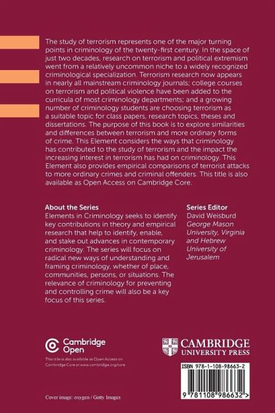 In the space of just two decades, research on terrorism and political extremism went from a relatively uncommon niche to a widely recognized criminological specialization. This Element considers the ways that criminology has contributed to the study of terrorism and the impact the increasing interest in terrorism has had on criminology.