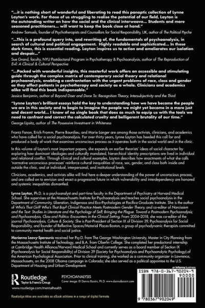 For over thirty years, Lynne Layton has heeded the call for a social psychoanalysis and produced a body of work that examines unconscious process as it operates both in the social world and in the clinic.