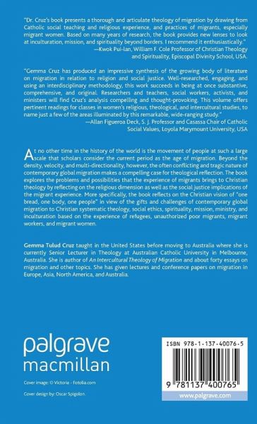 "Gemma Cruz has produced an impressive synthesis of the growing body of literature on migration in relation to religion and social justice. Well researched, engaging, and using an interdisciplinary methodology, this work succeeds in being at once substantive, comprehensive and original. Researchers and teachers, social workers, activists, and ministers will find Cruz' analysis compelling and thought provoking. This volume offers pertinent readings for classes in women's, religious, theological and intercultural studies, to name just a few of the areas illuminated by this remarkable, wide-ranging study."