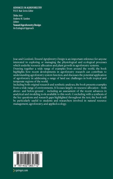 Jose and Gordon's Toward Agroforestry Design is an important reference for anyone interested in exploring or managing the physiological and ecological processes which underlie resource allocation and plant growth in agroforestry systems.