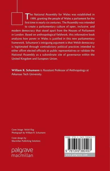 The National Assembly for Wales was established in 1999, granting the people of Wales a parliament for the first time in nearly six centuries. The Assembly was intended to create a parliamentary culture of open, inclusive, and modern democracy that stood apart from the Houses of Parliament in London. Based on anthropological fieldwork, this informative book analyzes how power in Wales is legitimated and justified. William Schumann s intriguing argument makes the case that contradictory political practices exist which affirm elected officials as public representatives while also reproducing the subordinate status of Wales within the institutional hierarchies of the United Kingdom and European Union.