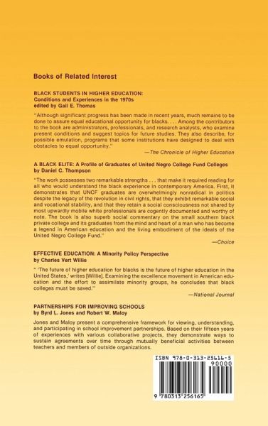 This book addresses some of the issues of equity and equality for Black undergraduates in higher education during the latter years of the twentieth century. It provides analyses of black students' experiences and performance at predominantly white colleges as well as Black colleges, and also examines the role of federal and state governments as well as private interest groups in achieving equity for blacks in higher education. Offering a contemporary perspective on the issues confronting colleges and universities as they strive to obtain equity for minorities, this timely work offers recommendations based on recent research that will assist them in achieving some of their goals. The book concentrates on postsecondary education and considers such topics as academic performance and experience; improving preparation for post-collegiate experiences; improving preparation for academic and professional careers in the scientific disciplines; expanding the role of the federal and state governments; and developing an agenda for private interest group involvement in achieving equality for Blacks in higher education.