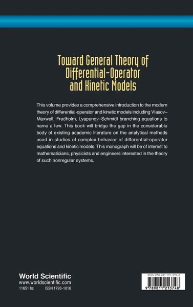 This volume provides a comprehensive introduction to the modern theory of differential-operator and kinetic models including Vlasov–Maxwell, Fredholm, Lyapunov–Schmidt branching equations to name a few. This book will bridge the gap in the considerable body of existing academic literature on the analytical methods used in studies of complex behavior of differential-operator equations and kinetic models. This monograph will be of interest to mathematicians, physicists and engineers interested in the theory of such non-standard systems.