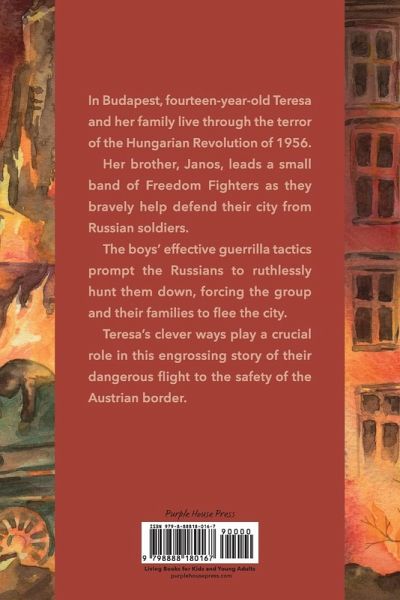 In Budapest, fourteen-year-old Teresa and her family live through the terror of the Hungarian Revolution of 1956. Her brother, Janos, leads a small band of Freedom Fighters as they bravely help defend their city from Russian soldiers. The boys' effective guerrilla tactics prompt the Russians to ruthlessly hunt them down, forcing the group and their families to flee the city. Teresa's clever ways play a crucial role in this engrossing story of their dangerous flight to the safety of the Austrian border.