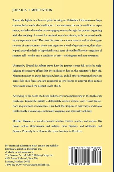 Toward the Infinite is a guide to focusing on the Kabbalistic Hitbonenut-deep contemplation method of meditation. It encompasses the entire meditative experience and takes the reader on an engaging journey through meditation, beginning with the readying of oneself for the meditation and continuing through the actual meditative experience. Written for a wide range of readers, this book deliberately excludes learned quotations and references yet it is uncompromising in the truth of its teachings. This intellectually stimulating and emotionally engaging exploration of meditation is both inspirational and spiritually uplifting.