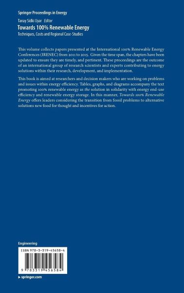 This volume collects papers presented at the International 100% Renewable Energy Conferences (IRENEC) from 2011 to 2015. Given the time span, the chapters have been updated to ensure they are timely, and pertinent. These proceedings are the outcome of an international group of research scientists and experts contributing to energy solutions within their research, development, and implementation.
