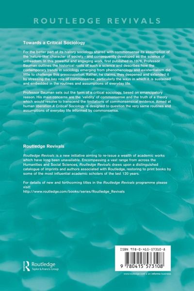 For the better part of its history sociology shared with commonsense its assumption of the 'nature-like' character of society - and consequently developed as the science of unfreedom. In this powerful and engaging work, first published in 1976, Professor Bauman outlines the historical roots of such a science and describes how the new trends in sociology emerging from phenomenology and existentialism do not challenge this preoccupation. Rather, he claims, they deepen and extend it by stressing the key role of commonsense, particularly the ways in which it is sustained and embedded in the routines and assumptions of everyday life.