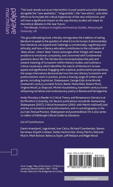 List of Contributors Acknowledgments Introduction: Towards a New Literary Humanism; A.Mousley PART I: LITERATURE AS ERSATZ THEOLOGY: DEEP SELVES Introduction; A.Mousley Faith, Feeling, Reality: Anne Brontë as an Existentialist Poet; R.Styler Virginia Woolf, Sympathy and Feeling for the Human; K.Martin Being Human and being Animal in Twentieth-Century Horse-Whispering Writings: 'Word-Bound Creatures' and 'the Breath of Horses'; E.Graham Judith Butler and the Catachretic Human; I.Arteel PART II: SCEPTICISM, OR HUMANISM AT THE LIMIT Introduction; A.Mousley Shakespeare's Refusers: Humanism at the Limit; R.Chamberlain Why Eliot Killed Lydgate: 'Joyful Cruelty' in Middlemarch; S.Earnshaw Atomised: Mary Midgley and Michel Houellebecq; J.Wallace Humanity without Itself: Robert Musil, Giorgio Agamben and Posthumanism; I.Callus & S.Herbrechter PART III: LITERATURE, DEMOCRACY, HUMANISMS FROM BELOW Introduction; A.Mousley Mobilising Unbribable Life: The Politics of Contemporary Poetry in Bosnia and Herzegovina; D.Arsenijevi? HUM (-an, -ane, -anity, -anities, -anism, -anise); M.Robson Humanising Marx: Theory and Fiction in the Fin de Siècle British Socialist Periodical; D.Mutch Civic Humanism: Said, Brecht and Coriolanus; N.Wood References Index