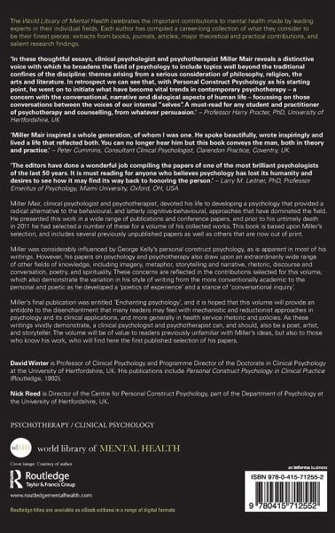 The World Library of Mental Health celebrates the important contributions to mental health made by leading experts in their individual fields. Each author has compiled a career-long collection of what they consider to be their finest pieces: extracts from books, journals, articles, major theoretical and practical contributions, and salient research findings. Miller Mair, clinical psychologist and psychotherapist, devoted his life to developing a psychology that provided a radical alternative to the behavioural, and latterly cognitive-behavioural, approaches that have dominated the field. He presented this work in a wide range of publications and conference papers, and prior to his untimely death in 2011 he had selected a number of these for a volume of his collected works. This book is based upon Miller's selection, and includes several previously unpublished papers as well as others that are now out of print. Miller was considerably influenced by George Kelly's personal construct psychology, as is apparent in most of his writings. However, his papers on psychology and psychotherapy also draw upon an extraordinarily wide range of other fields of knowledge, including imagery; metaphor; storytelling and narrative; rhetoric; discourse and conversation; poetry; and spirituality. These concerns are reflected in the contributions selected for this volume, which also demonstrate the variation in his style of writing from the more conventionally academic to the personal and poetic as he developed a 'poetics of experience' and a stance of 'conversational inquiry'. Miller's final publication was entitled 'Enchanting psychology', and it is hoped that this volume will provide an antidote to the disenchantment that many readers may feel with mechanistic and reductionist approaches in psychology and its clinical applications, and more generally in health service rhetoric and policies. As these writings vividly demonstrate, a clinical psychologist and psychotherapist can, and should, also be a poet, artist, and storyteller. The volume will be of value to readers previously unfamiliar with Miller's ideas, but also to those who know his work, who will find here the first published selection of his papers.