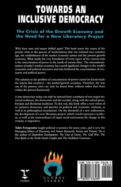 An analysis of the growth economy, this book traces the causes of the present crisis in the modern market system, initiated two centuries ago with the establishment of the market economy system which has led to the present growth economy. It concludes that a true democracy can only be derived from a synthesis of the democratic and socialist traditions, along with the radical green, feminist and libertarian ideologies. To this end, this text offers a new vision of an inclusive democracy.