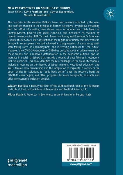The countries in the Western Balkans have been severely affected by the wars and conflicts that led to the breakup of former Yugoslavia, by political instability and the effort of creating new states, weak economies and high levels of unemployment, poverty and social exclusion, and inequality. As revealed by recent surveys, such as EBRD's Life in Transition Survey and Eurofound's European Quality of Life Survey, life satisfaction in the region is far below that elsewhere in Europe. In recent years they had achieved a strong impetus of economic growth with falling rates of unemployment and increasing optimism for the future. However, the COVID-19 pandemic of 2020 has brought about a sudden reversal of these trends and a renewed deterioration in the economic outlook, and an increase in social hardships that heralds a repeat of past failures in economic inclusion policies. This book identifies the key challenges in the areas of economic inclusion, focusing on thethemes of labour markets, vocational education and skills, female entrepreneurship and the integration of migrants. It considers the opportunities for solutions to "build back better" once the recovery from the COVID-19 crisis begins, and offers proposals for more acceptable, equitable and effective economic inclusion policies.