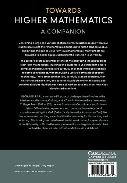 Richard Earl is currently Director of Undergraduate Studies in the Mathematical Institute, University of Oxford, and a Tutor in Mathematics at Worcester College. From 2003-13, he was Admissions Coordinator and Schools Liaison Officer in the department and has over a decade's experience setting the MAT (Oxford's Mathematics Admissions Test). He has won several teaching awards within the University for his teaching and lecturing. This book grew out of a residential week he ran for several years in Oxford for new students who had not had the chance to study Further Mathematics at A-Level.
