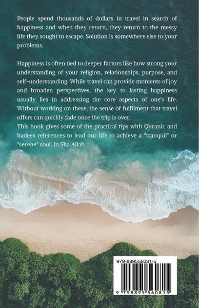 People spend thousands of dollars in travel in search of happiness and when they return, they return to the messy life they sought to escape. Solution is somewhere else to your problems. Happiness is often tied to deeper factors like how strong your understanding of your religion, relationships, purpose, and self-understanding. While travel can provide moments of joy and broaden perspectives, the key to lasting happiness usually lies in addressing the core aspects of one's life. Without working on these, the sense of fulfilment that travel offers can quickly fade once the trip is over. So, the question arises, how to achieve a "tranquil" or "serene" soul where you have lived peacefully in this world and also Allah SWT will welcome us with greetings in our hereafter life. This book gives some of the practical tips with Quranic and hadees references to lead our life to achieve a "tranquil" or "serene" soul. In Sha Allah.