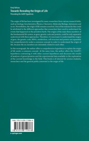 In this monograph, the author offers a comprehensive hypothesis to explain the origin of life under a common concept. At the same time,the author offers the [GADV] hypothesis contrasting it with other current hypotheses and discusses the results of analyses of genes/proteins and the experimental data available in the exploration of the current knowledge in the field. This book is of interest for science students, researchers and the general public interested in the origin of life.