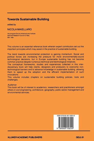 This volume contains the extended versions of selected papers presented at the first Mediterranean Conference "Sharing Knowledge on Sustainable Building" held at the Polytechnic ofBari in December 1999, supported by the National Research Council of Italy. The publication of this book was made possible through the efforts of the contributing Authors. Other people have provided invaluable support for the conference and for the preparation of this volume; in particular, I wish to thank Antonella Lerario for providing support in the final editing of the text and images. 1 As reported in Boonstra and Rovers (200 I) , people spend a great deal of time inside buildings; therefore, decisions about design, construction, use, maintenance, renovation, demolition, reuse and recycling of buildings have a huge impact on the sustainable development of our society. Technical aspects, however, should be supported by adequate policies, developed with appropriate tools and driven by meaningful challenges. For people involved in sustainable buildings, the conceptual frameworks, studies and experiences collected in this volume, organized into three parts - "Policies", "Tools" and "Challenges" - will help to advance knowledge allowing them to adopt and more efficiently implement such innovations sooner.