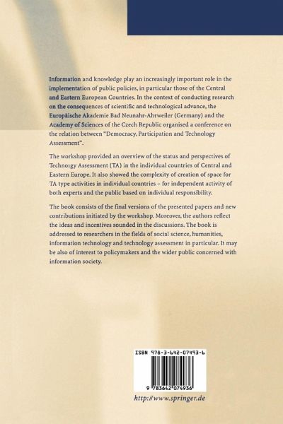 Information and knowledge play an increasingly important role in the implementation of public policies, in particular those of the Central and Eastern European Countries. They are involved in many respects in the elaboration of scientific programs. They are more and more present in the political decision making process and as topic for scientific conferences. They are often at the centre of international discussions on related topics, for example, differences in approaches to produce and apply knowledge or different responses to social function of information. A major lesson of these past years applies to democracy. Europeans demand more involvement in decisions that concern them. This demand goes weH beyond decision making. For public action to be acceptable and efficient, the whole process should become more democratic, from the defmition of the problems, to the implementation and the evaluation of solutions. In the context of conducting research on the consequences of scientific and technological advance, the Europäische Akademie Bad Neuenahr-Ahrweiler in Germany and the Academy of Science of the Czech Republic organised a conference on the relationship between "democracy-participation-technology assessment" in February 1999. The objective of the workshop was to express and to the problems of transition "from exchange various viewpoints and attitudes information society to knowledge society. " The great response given to the international conference underlines the need not only for Central and Eastern European Countries to take into consideration more common projects like this for the future.