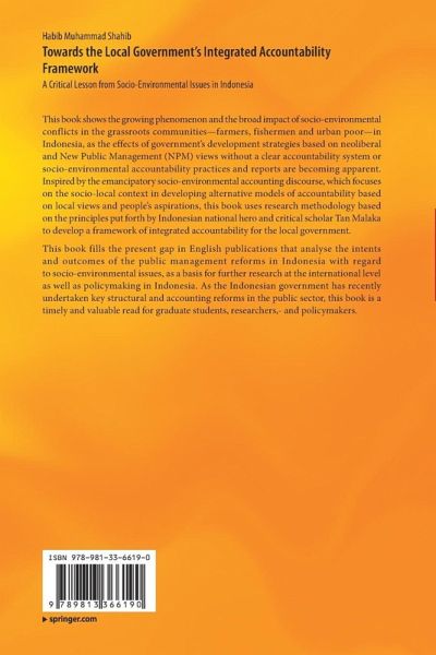 This book shows the growing phenomenon and the broad impact of socio-environmental conflicts in the grassroots communities-farmers, fishermen and urban poor-in Indonesia, as the effects of government's development strategies based on neoliberal and New Public Management (NPM) views without a clear accountability system or socio-environmental accountability practices and reports are becoming apparent. Inspired by the emancipatory socio-environmental accounting discourse, which focuses on the socio-local context in developing alternative models of accountability based on local views and people's aspirations, this book uses research methodology based on the principles put forth by Indonesian national hero and critical scholar Tan Malaka to develop a framework of integrated accountability for the local government.