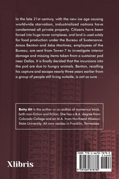 In the late 21st century, with the new ice age causing worldwide starvation, industrialized nations have condemned all private property. Citizens have been forced into huge tower complexes, and land is used solely for food production under the Bureau of Sustenance. Amos Benton and Jake Martinez, employees of the Bureau, are sent from Tower-7 to investigate interior damage and missing items taken from a sustainer pod near Dallas. It is finally decided that the incursions into the pod are due to hungry animals. Benton, recalling his capture and escape nearly three years earlier from a group of people still living outside, is not so sure . . .