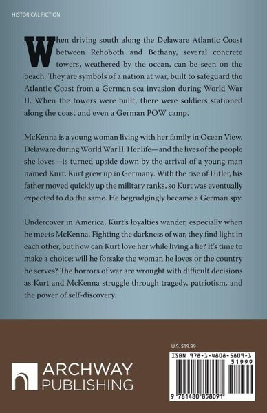 When driving south along the Delaware Atlantic Coast between Rehoboth and Bethany, several concrete towers, weathered by the ocean, can be seen on the beach. They are symbols of a nation at war, built to safeguard the Atlantic Coast from a German sea invasion during World War II. When the towers were built, there were soldiers stationed along the coast and even a German POW camp. McKenna is a young woman living with her family in Ocean View, Delaware during World War II. Her lifeand the lives of the people she lovesis turned upside down by the arrival of a young man named Kurt. Kurt grew up in Germany. With the rise of Hitler, his father moved quickly up the military ranks, so Kurt was eventually expected to do the same. He begrudgingly became a German spy. Undercover in America, Kurts loyalties wander, especially when he meets McKenna. Fighting the darkness of war, they find light in each other, but how can Kurt love her while living a lie? Its time to make a choice: will he forsake the woman he loves or the country he serves? The horrors of war are wrought with difficult decisions as Kurt and McKenna struggle through tragedy, patriotism, and the power of self-discovery.