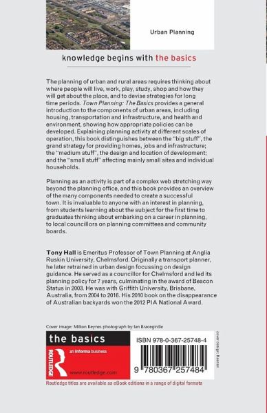 The planning of urban and rural areas requires thinking about where people will live, work, play, study, shop and how they will get about the place, and to devise strategies for long time periods. Town Planning: The Basics provides a general introduction to the components of urban areas, including housing, transportation and infrastructure, and health and environment, showing how appropriate policies can be developed. Explaining planning activity at different scales of operation, this book distinguishes between the "big stuff", the grand strategy for providing homes, jobs and infrastructure; the "medium stuff", the design and location of development; and the "small stuff" affecting mainly small sites and individual households.