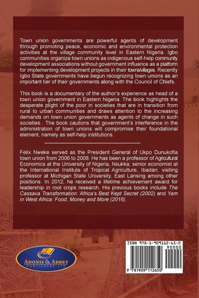 Town union governments are powerful agents of development through promoting peace, economic and environmental protection activities at the village community level in Eastern Nigeria. Igbo communities organize town unions as indigenous self-help community development associations without government influence as a platform for implementing development projects in their towns/villages. Recently Igbo State governments have begun recognizing town unions as an important tier of their governments along with the Council of Chiefs. This book is a documentary of the author’s experience as head of a town union government in Eastern Nigeria. The book highlights the desperate plight of the poor in societies that are in transition from rural to urban communities and draws attention to the increasing demands on town union governments as agents of change in such societies. The book cautions that government’s interference in the administration of town unions will compromise their foundational element, namely as self-help institutions.