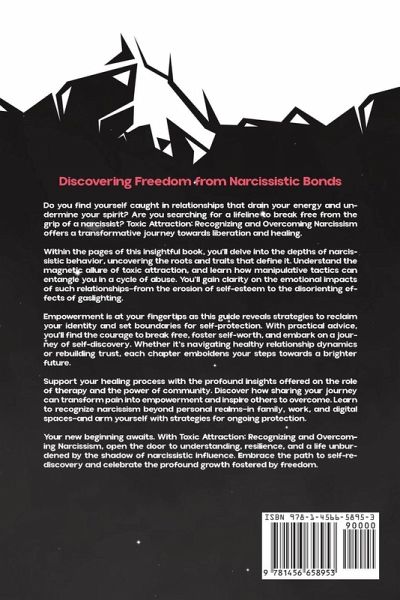 Discovering Freedom from Narcissistic Bonds Do you find yourself caught in relationships that drain your energy and undermine your spirit? Are you searching for a lifeline to break free from the grip of a narcissist? Toxic Attraction: Recognizing and Overcoming Narcissism offers a transformative journey towards liberation and healing. Within the pages of this insightful book, you'll delve into the depths of narcissistic behavior, uncovering the roots and traits that define it. Understand the magnetic allure of toxic attraction, and learn how manipulative tactics can entangle you in a cycle of abuse. You'll gain clarity on the emotional impacts of such relationships-from the erosion of self-esteem to the disorienting effects of gaslighting. Empowerment is at your fingertips as this guide reveals strategies to reclaim your identity and set boundaries for self-protection. With practical advice, you'll find the courage to break free, foster self-worth, and embark on a journey of self-discovery. Whether it's navigating healthy relationship dynamics or rebuilding trust, each chapter emboldens your steps towards a brighter future. Support your healing process with the profound insights offered on the role of therapy and the power of community. Discover how sharing your journey can transform pain into empowerment and inspire others to overcome. Learn to recognize narcissism beyond personal realms-in family, work, and digital spaces-and arm yourself with strategies for ongoing protection. Your new beginning awaits. With Toxic Attraction: Recognizing and Overcoming Narcissism, open the door to understanding, resilience, and a life unburdened by the shadow of narcissistic influence. Embrace the path to self-rediscovery and celebrate the profound growth fostered by freedom.