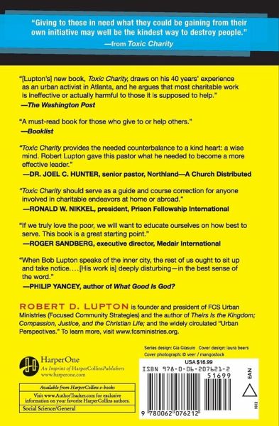 Public service is a way of life for Americans; giving is a part of our national character. But compassionate instincts and generous spirits aren’t enough, says veteran urban activist Robert D. Lupton. In this groundbreaking guide, he reveals the disturbing truth about charity: all too much of it has become toxic, devastating to the very people it’s meant to help. In his four decades of urban ministry, Lupton has experienced firsthand how our good intentions can have unintended, dire consequences. Our free food and clothing distribution encourages ever-growing handout lines, diminishing the dignity of the poor while increasing their dependency. We converge on inner-city neighborhoods to plant flowers and pick up trash, battering the pride of residents who have the capacity (and responsibility) to beautify their own environment. We fly off on mission trips to poverty-stricken villages, hearts full of pity and suitcases bulging with giveaways—trips that one Nicaraguan leader describes as effective only in “turning my people into beggars.” In Toxic Charity, Lupton urges individuals, churches, and organizations to step away from these spontaneous, often destructive acts of compassion toward thoughtful paths to community development. He delivers proven strategies for moving from toxic charity to transformative charity. Proposing a powerful “Oath for Compassionate Service” and spotlighting real-life examples of people serving not just with their hearts but with proven strategies and tested tactics, Lupton offers all the tools and inspiration we need to develop healthy, community-driven programs that produce deep, measurable, and lasting change. Everyone who volunteers or donates to charity needs to wrestle with this book.