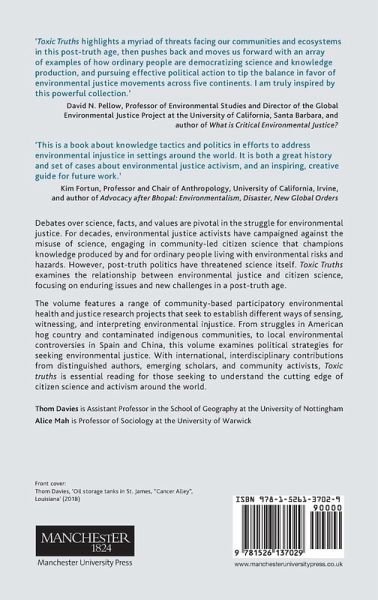 Post-truth politics have threatened science itself. Drawing on case studies from around the world, Toxic Truths examines enduring issues and new challenges for tackling environmental injustice in a post-truth age. -- .