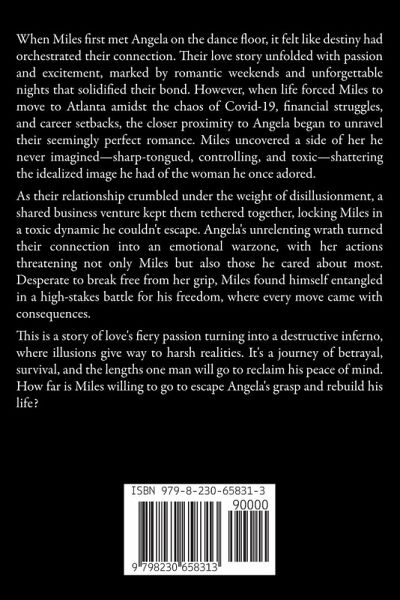 When Miles first met Angela on the dance floor, it felt like destiny had orchestrated their connection. Their love story unfolded with passion and excitement, marked by romantic weekends and unforgettable nights that solidified their bond. However, when life forced Miles to move to Atlanta amidst the chaos of Covid-19, financial struggles, and career setbacks, the closer proximity to Angela began to unravel their seemingly perfect romance. Miles uncovered a side of her he never imagined-sharp-tongued, controlling, and toxic-shattering the idealized image he had of the woman he once adored. As their relationship crumbled under the weight of disillusionment, a shared business venture kept them tethered together, locking Miles in a toxic dynamic he couldn't escape. Angela's unrelenting wrath turned their connection into an emotional warzone, with her actions threatening not only Miles but also those he cared about most. Desperate to break free from her grip, Miles found himself entangled in a high-stakes battle for his freedom, where every move came with consequences. This is a story of love's fiery passion turning into a destructive inferno, where illusions give way to harsh realities. It's a journey of betrayal, survival, and the lengths one man will go to reclaim his peace of mind. How far is Miles willing to go to escape Angela's grasp and rebuild his life?