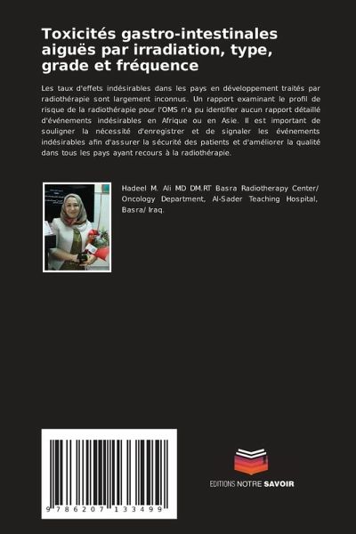 Les taux d'effets indésirables dans les pays en développement traités par radiothérapie sont largement inconnus. Un rapport examinant le profil de risque de la radiothérapie pour l'OMS n'a pu identifier aucun rapport détaillé d'événements indésirables en Afrique ou en Asie. Il est important de souligner la nécessité d'enregistrer et de signaler les événements indésirables afin d'assurer la sécurité des patients et d'améliorer la qualité dans tous les pays ayant recours à la radiothérapie.