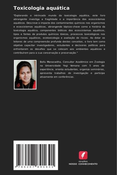 "Explorando o intrincado mundo da toxicologia aquática, este livro abrangente investiga a fragilidade e a importância dos ecossistemas aquáticos. Descreve o impacto dos contaminantes químicos nos organismos e ecossistemas aquáticos, abrangendo tópicos-chave como a história da toxicologia aquática, componentes bióticos dos ecossistemas aquáticos, tipos e fontes de produtos químicos tóxicos, processos toxicológicos nos organismos aquáticos, ecotoxicologia e avaliação de riscos. Ao dotar os leitores de uma compreensão profunda destes conceitos, o livro tem como objetivo capacitar investigadores, estudantes e decisores políticos para enfrentarem os desafios que se colocam aos ambientes aquáticos e contribuírem para a sua conservação e preservação."