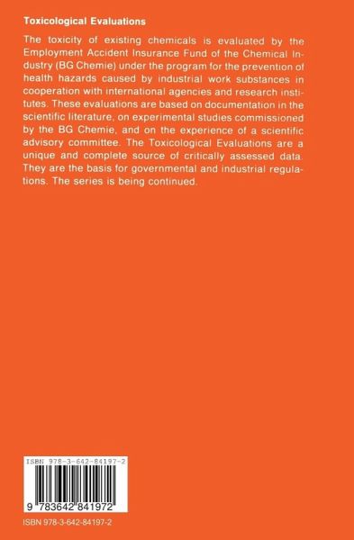 As part of its programme for the prevention of health hazards caused by industrial work substances, the Berufsgenossenschaft der Chemischen Industrie began in 1977 to investigate the toxicity of those existing substances which are in widespread use, have many different applica tions and are suspected of being possibly dangerous to health, in particular of having long-term effects on health. It is hoped by means of this testing to close gaps in our knowledge and to increase the scientific validity of the required risk assessments. The results of the toxicological investigations carried out by the Berufsgenossenschaft der Chemischen Industrie, and the resulting substance assess ments have been published in West Germany since 1987 in the form of "Toxicological Evaluations". In order to make this useful information internationally available, the "Toxicological Evaluations" are now being published in English. This first volume contains individual evaluations of 21 substances. The publication of further individual evaluations and, if necessary, reassessments of previously published evaluations is planned.