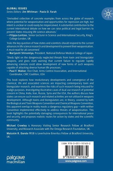This book explores how revolutionary developments and convergence of the chemical, life and associated sciences are impacting contemporary toxin and bioregulator research, and examines the risks of such research being misused for malign purposes. Investigating illustrative cases of dual use research of potential concern in China, India, Iran, Russia, Syria and the USA, the authors discuss how states can ensure such research and related activities are not utilised in weapons development. Although toxins and bioregulators are, in theory, covered by both the Biological and Toxin Weapons Convention and Chemical Weapons Convention, this apparent overlap in reality masks a dangerous regulatory gap - with neither Convention implemented effectively to address threats of weaponisation. This book highlights the potentially damaging consequences for international peace and security, and proposes realistic routes for action by states and the scientific community.