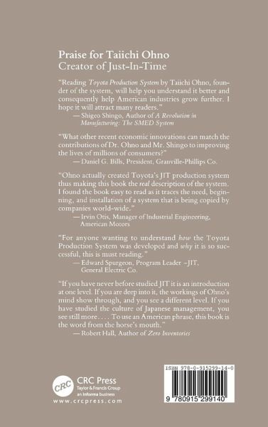 In this classic text, Taiichi Ohno--inventor of the Toyota Production System and Lean manufacturing--shares the genius that sets him apart as one of the most disciplined and creative thinkers of our time. Combining his candid insights with a rigorous analysis of Toyota's attempts at Lean production, Ohno's book explains how Lean principles can improve any production endeavor. A historical and philosophical description of just-in-time and Lean manufacturing, this work is a must read for all students of human progress. On a more practical level, it continues to provide inspiration and instruction for those seeking to improve efficiency through the elimination of waste.