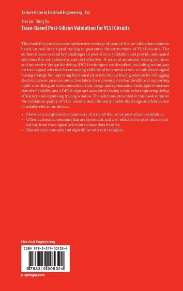 This book first provides a comprehensive coverage of state-of-the-art validation solutions based on real-time signal tracing to guarantee the correctness of VLSI circuits. The authors discuss several key challenges in post-silicon validation and provide automated solutions that are systematic and cost-effective. A series of automatic tracing solutions and innovative design for debug (DfD) techniques are described, including techniques for trace signal selection for enhancing visibility of functional errors, a multiplexed signal tracing strategy for improving functional error detection, a tracing solution for debugging electrical errors, an interconnection fabric for increasing data bandwidth and supporting multi-core debug, an interconnection fabric design and optimization technique to increase transfer flexibility and a DfD design and associated tracing solution for improving debug efficiency and expanding tracing window. The solutions presented in this book improve the validation quality of VLSI circuits, and ultimately enable the design and fabrication of reliable electronic devices.