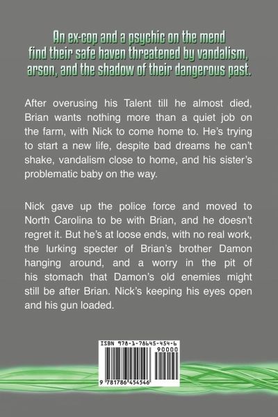 An ex-cop and a psychic on the mend find their safe haven threatened by vandalism, arson, and the shadow of their dangerous past. After overusing his Talent till he almost died, Brian wants nothing more than a quiet job on the farm, with Nick to come home to. He's trying to start a new life, despite bad dreams he can't shake, vandalism close to home, and his sister's problematic baby on the way. Nick gave up the police force and moved to North Carolina to be with Brian, and he doesn't regret it. But he's at loose ends, with no real work, the lurking specter of Brian's brother Damon hanging around, and a worry in the pit of his stomach that Damon's old enemies might still be after Brian. Nick's keeping his eyes open and his gun loaded.