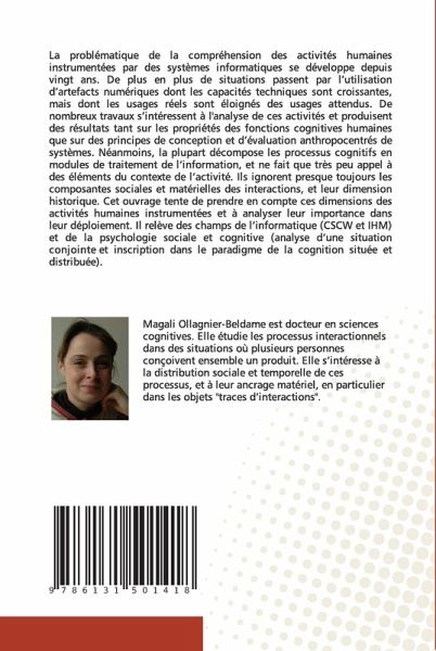 La problématique de la compréhension des activités humaines instrumentées par des systèmes informatiques se développe depuis vingt ans. De plus en plus de situations passent par l'utilisation d'artefacts numériques dont les capacités techniques sont croissantes, mais dont les usages réels sont éloignés des usages attendus. De nombreux travaux s'intéressent à l'analyse de ces activités et produisent des résultats tant sur les propriétés des fonctions cognitives humaines que sur des principes de conception et d'évaluation anthropocentrés de systèmes. Néanmoins, la plupart décompose les processus cognitifs en modules de traitement de l'information, et ne fait que très peu appel à des éléments du contexte de l'activité. Ils ignorent presque toujours les composantes sociales et matérielles des interactions, et leur dimension historique. Cet ouvrage tente de prendre en compte ces dimensions des activités humaines instrumentées et à analyser leur importance dans leur déploiement. Il relève des champs de l'informatique (CSCW et IHM) et de la psychologie sociale et cognitive (analyse d'une situation conjointe et inscription dans le paradigme de la cognition située et distribuée).