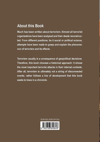 Terrorism usually is a consquence of geopolitical decisions. Therefore, this book chooses a historical approach: it shows the most important terrorist attacks and their contexts. After all, terrorism is ultimately not a string of disconnected events; rather follows a line of development that this book seeks to trace in a chronicle.