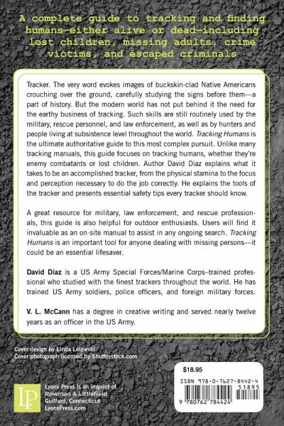 David Diaz is a 20-year U.S. Army Special Forces/Marine Corps professional who recently retired from the U.S. Armed Forces. He first learned about tracking from the son of a Malaysian headhunter, who hunted insurgents in the jungles of Malaysia. He fine-tuned his craft through years of dedicated study and instruction from the finest trackers throughout the world, including the Dyak/Iban of Brunei, Nigrito aborigines from the Philippines, the San Man of Botswana, and U.S. Vietnam-veteran Marine trackers, who gained their skills from the Montagnards in the highlands of Vietnam, Laos, and Cambodia. He has taught these skills to U.S. Army soldiers, police officers, and foreign military forces worldwide, in times of war and peace, in both friendly and hostile environments. Writer V.L. McCann has a B.A. in Creative Writing, graduating with Honors in 1981 and thereafter serving nearly 12 years as an officer in the U.S. Army. In 1997, McCann became owner and chief writer/editor of Abbacy Professional Writing in Tacoma, Washington.