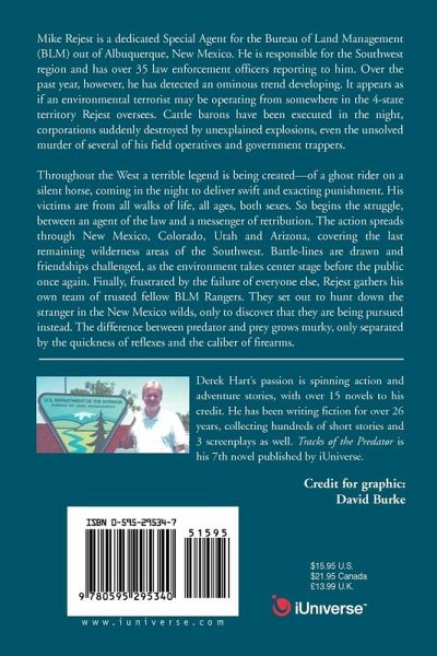 Mike Rejest is a dedicated Special Agent for the Bureau of Land Management (BLM) out of Albuquerque, New Mexico. He is responsible for the Southwest region and has over 35 law enforcement officers reporting to him. Over the past year, however, he has detected an ominous trend developing. It appears as if an environmental terrorist may be operating from somewhere in the 4-state territory Rejest oversees. Cattle barons have been executed in the night, corporations suddenly destroyed by unexplained explosions, even the unsolved murder of several of his field operatives and government trappers. Throughout the West a terrible legend is being created - of a ghost rider on a silent horse, coming in the night to deliver swift and exacting punishment. His victims are from all walks of life, all ages, both sexes. So begins the struggle, between an agent of the law and a messenger of retribution. The action spreads through New Mexico, Colorado, Utah and Arizona, covering the last remaining wilderness areas of the Southwest. Battle-lines are drawn and friendships challenged, as the environment takes center stage before the public once again. Finally, frustrated by the failure of everyone else, Rejest gathers his own team of trusted fellow BLM Rangers. They set out to hunt down the stranger in the New Mexico wilds, only to discover that they are being pursued instead. The difference between predator and prey grows murky, only separated by the quickness of reflexes and the caliber of firearms.