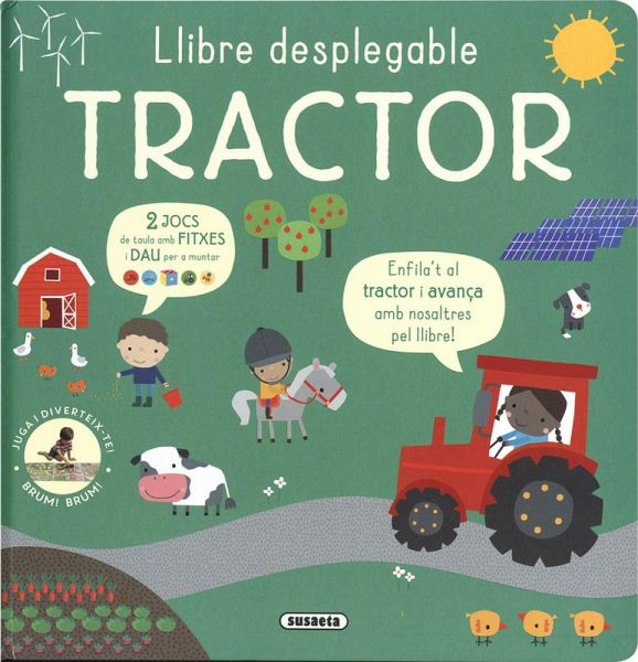 Obre aquest llibre i viu una aventura! Escull un lloc per a desplegar-lo a terra i enfil't al tractor: conrearás un hort, alimentarás els cavalls... i farás un munt de coses més! Inclou 2 jocs de taula amb fitxes i dau per a muntar.