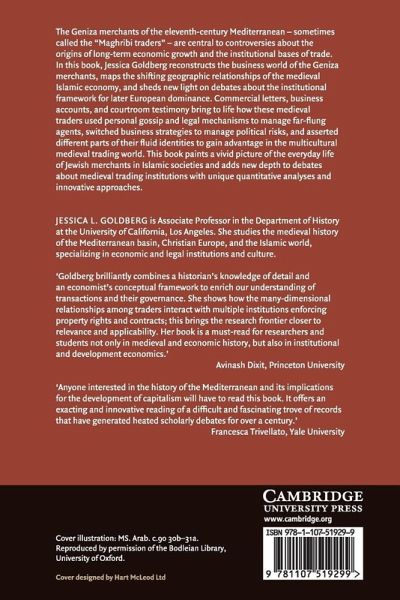 The Geniza merchants of the eleventh-century Mediterranean - sometimes called the 'Maghribi traders' - are central to controversies about the origins of long-term economic growth and the institutional bases of trade. In this book, Jessica Goldberg reconstructs the business world of the Geniza merchants, maps the shifting geographic relationships of the medieval Islamic economy and sheds new light on debates about the institutional framework for later European dominance. Commercial letters, business accounts and courtroom testimony bring to life how these medieval traders used personal gossip and legal mechanisms to manage far-flung agents, switched business strategies to manage political risks and asserted different parts of their fluid identities to gain advantage in the multicultural medieval trading world. This book paints a vivid picture of the everyday life of Jewish merchants in Islamic societies and adds new depth to debates about medieval trading institutions with unique quantitative analyses and innovative approaches.