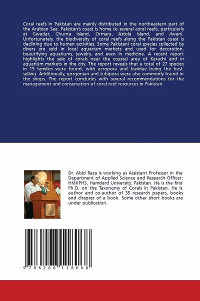 Coral reefs in Pakistan are mainly distributed in the northeastern part of the Arabian Sea. Pakistan's coast is home to several coral reefs, particularly at Gwadar, Churna Island, Ormara, Astola Island, and Jiwani. Unfortunately, the biodiversity of coral reefs along the Pakistan coast is declining due to human activities. Some Pakistani coral species collected by divers are sold in local aquarium markets and used for decoration, beautifying aquariums, jewelry, and even in medicine. A recent report highlights the sale of corals near the coastal area of Karachi and in aquarium markets in the city. The report reveals that a total of 27 species in 15 families were found, with acropora and faviidae being the best-selling. Additionally, gorgonian and tubipora were also commonly found in the shops. The report concludes with several recommendations for the management and conservation of coral reef resources in Pakistan.