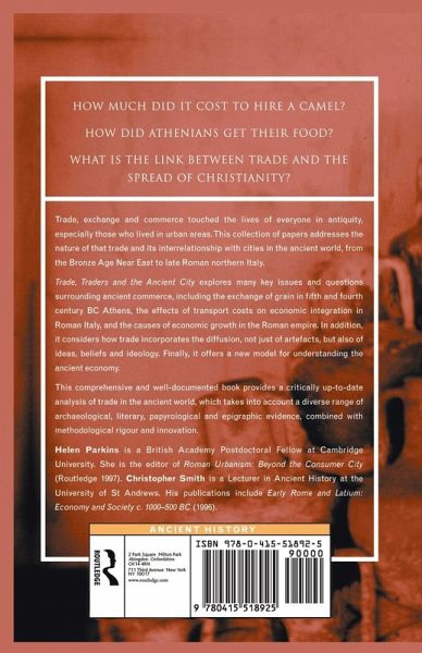 List of Figures Notes on Contributors Preface List of Abbreviations 1. Time for Change? Shaping the Future of the Ancient Economy Helen Parkins 2. The Old Assyrian Merchants Amelie Kuhrt 3. Traders and Artisans in Archaic Central Italy Christopher Smith 4. Trade on the Black Sea in the Archaic and Classical Periods: Some Observations Gocha R. Tsetskhladze 5. Ceramics and Positivism Revisited: Greek Transport Amphoras and History Mark Lawall 6. The Grain Trade of Athens in the Fourth Century BC Michael Whitby 7. Land Transport in Roman Italy: Costs, Practice and the Economy Ray Laurence 8. Trade and Traders in the Roman World: Scale, Structure, and Organization Jeremy Paterson 9. Trade and the City in Roman Egypt Richard Alston 10. Soul Merchants: Trade Networks, Religious Diffusion and Christian Origins in Northern Italy Mark Humphries 11. Ancient Economies: Models and Muddles John Davies Indexes.