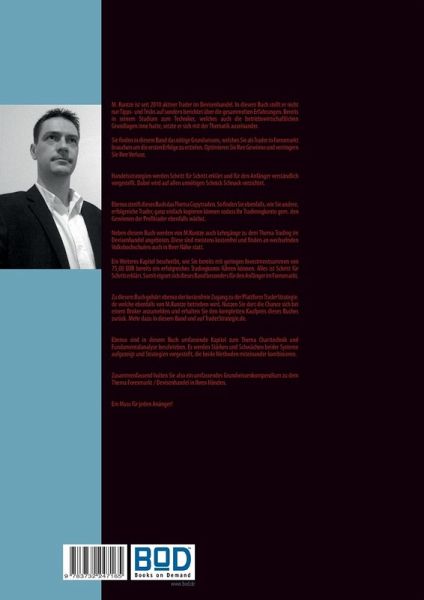 Sie finden in diesem Band das nötige Grundwissen, welches Sie als Trader in Forexmarkt brauchen um die ersten Erfolge zu erzielen. Optimieren Sie Ihre Gewinne und verringern Sie Ihre Verluse.Handelsstrategien werden Schritt für Schritt erklärt und für den Anfänger verständlich vorgestellt. Dabei wird auf allen unnötigen Schnick Schnack verzichtet.Ebenso streift dieses Buch das Thema Copytraden. So finden Sie ebenfalls, wie Sie andere, erfolgreiche Trader, ganz einfach kopieren können so dass Ihr Tradingkonto gem. den Gewinnen der Profitrader ebenfalls wächst.Neben diesem Buch werden von M.Kuntze auch Lehrgänge zu dem Thema Trading im Devisenhandel angeboten. Diese sind meistens kostenfrei und finden an wechselnden Volkshochschulen auch in Ihrer Nähe statt.Ein Weiteres Kapitel beschreibt, wie Sie bereits mit geringen Investmentsummen von 75,00 EUR bereits ein erfolgreiches Tradingkonto führen können. Alles ist Schritt für Schritt erklärt. Somit eignet sich dieses Band besonders für den Anfänger im Forexmarkt.Zu diesem Buch gehört ebenso der kostenfreie Zugang zu der Plattform TraderStrategie.de welche ebenfalls von M.Kuntze betrieben wird. Nutzen Sie dort die Chance, sich bei einem Broker anzumelden und erhalten Sie den kompletten Kaufpreis dieses Buches zurück. Mehr dazu in diesem Band und auf TraderStrategie.de.Ebenso sind in diesem Buch umfassende Kapitel zum Thema Charttechnik undFundamentalanalyse beschrieben. Es werden Stärken und Schwächen beider Systeme aufgezeigt und Strategien vorgestellt, die beide Methoden miteinander kombinieren.Zusammenfassend halten Sie also ein umfassendes Grundwissenkompendium zu dem Thema Forexmarkt / Devisenhandel in Ihren Händen.Ein Muss für jeden Anänger.