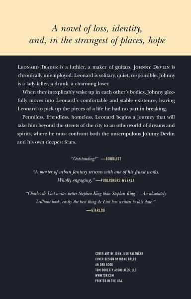A novel of loss, identity, and, in the strangest of places, hope. Leonard Trader is a luthier, a maker of guitars. Johnny Devlin is chronically unemployed. Leonard is solitary, quiet, responsible. Johnny is a lady-killer, a drunk, a charming loser. When they inexplicably wake up in each other's bodies, Johnny gleefully moves into Leonard's comfortable and stable existence, leaving Leonard to pick up the pieces of a life he had no part in breaking. Penniless, friendless, homeless, Leonard begins a journey that will take him beyond the streets of the city to an otherworld of dreams and spirits, where he must confront both the unscrupulous Johnny Devlin and his own deepest fears.