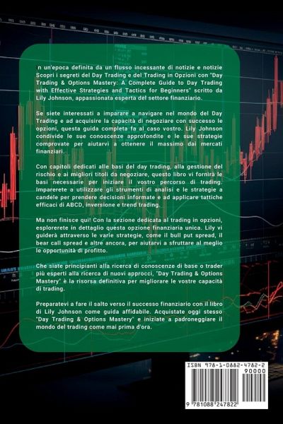 In un'epoca definita da un flusso incessante di notizie e Scopri i segreti del Day Trading e del Trading in Opzioni con "Day Trading & Options Mastery: A Complete Guide to Day Trading with Effective Strategies and Tactics for Beginners" scritto da Lily Johnson, appassionata esperta del settore finanziario. Se siete interessati a imparare a navigare nel mondo del Day Trading e ad acquisire la capacità di negoziare con successo le opzioni, questa guida completa fa al caso vostro. Lily Johnson condivide le sue conoscenze approfondite e le sue strategie comprovate per aiutarvi a ottenere il massimo dai mercati finanziari. Con capitoli dedicati alle basi del day trading, alla gestione del rischio e ai migliori titoli da negoziare, questo libro vi fornirà le basi necessarie per iniziare il vostro percorso di trading. Imparerete a utilizzare gli strumenti di analisi e le strategie a candele per prendere decisioni informate e ad applicare tattiche efficaci di ABCD, inversione e trend trading. Ma non finisce qui! Con la sezione dedicata al trading di opzioni, esplorerete nel dettaglio questa opzione finanziaria unica. Lily vi guiderà attraverso le varie strategie, come il bull put spread, il bear call spread e altre ancora, per aiutarvi a sfruttare al meglio le opportunità di profitto. Che siate principianti alla ricerca di conoscenze di base o trader più esperti alla ricerca di nuovi approcci, "Day Trading & Options Mastery" è la risorsa definitiva per migliorare le vostre capacità di trading. Preparatevi a fare il salto verso il successo finanziario con il libro di Lily Johnson come guida di fiducia. Acquistate oggi stesso "Day Trading & Options Mastery" e iniziate a padroneggiare il mondo del trading come mai prima d'ora!