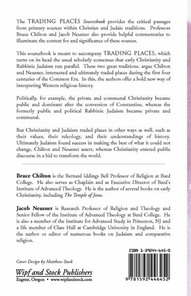 The 'Trading Places Sourcebook' provides the critical passages from primary sources within Christian and Judaic traditions. Professors Bruce Chilton and Jacob Neusner also provide helpful commentaries to illuminate the context for and significance of these sources. This sourcebook is meant to accompany 'Trading Places', which turns on its head the usual scholarly consensus that early Christianity and Rabbinic Judaism run parallel. These two great traditions, argue Chilton and Neusner, intersected and ultimately traded places during the first four centuries of the Common Era. In this, the authors offer a bold new way of interpreting Western religious history. Politically, for example, the private and communal Christianity became public and dominant after the conversion of Constantine, whereas the formerly public and political Rabbinic Judaism became private and communal. But Christianity and Judaism traded places in other ways as well, such as their values, their teleology, and their understandings of history. Ultimately Judaism found success in making the best of what it could not change, Chilton and Neusner assert, whereas Christianity entered public discourse in a bid to transform the world.