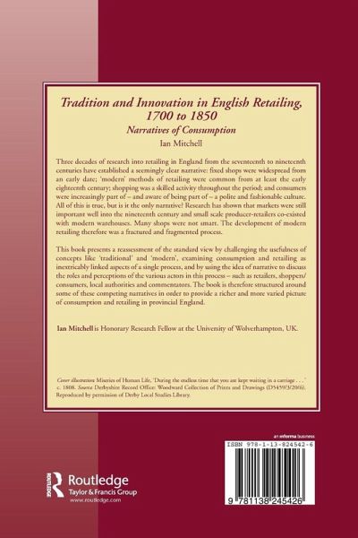 Three decades of research into retailing in England from the seventeenth to nineteenth centuries has established a seemingly clear narrative: fixed shops were widespread from an early date; 'modern' methods of retailing were common from at least the early eighteenth century; shopping was a skilled activity throughout the period; and consumers were increasingly part of - and aware of being part of - a polite and fashionable culture. This book presents a reassessment of the standard view by challenging the usefulness of concepts like 'traditional' and 'modern', examining consumption and retailing as inextricably linked aspects of a single process, and by using the idea of narrative to discuss the roles and perceptions of the various actors in this process - such as retailers, shoppers/consumers, local authorities and commentators.